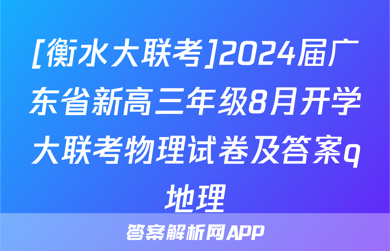 [衡水大联考]2024届广东省新高三年级8月开学大联考物理试卷及答案q地理正在持续更新,目前答案易对为大家整理了相关试题及答案,供大家查缺补漏,高效提升成绩。