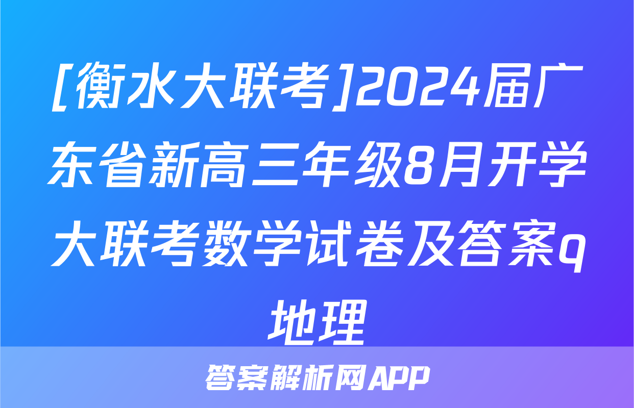 [衡水大联考]2024届广东省新高三年级8月开学大联考数学试卷及答案q地理正在持续更新,目前答案易对为大家整理了相关试题及答案,供大家查缺补漏,高效提升成绩。