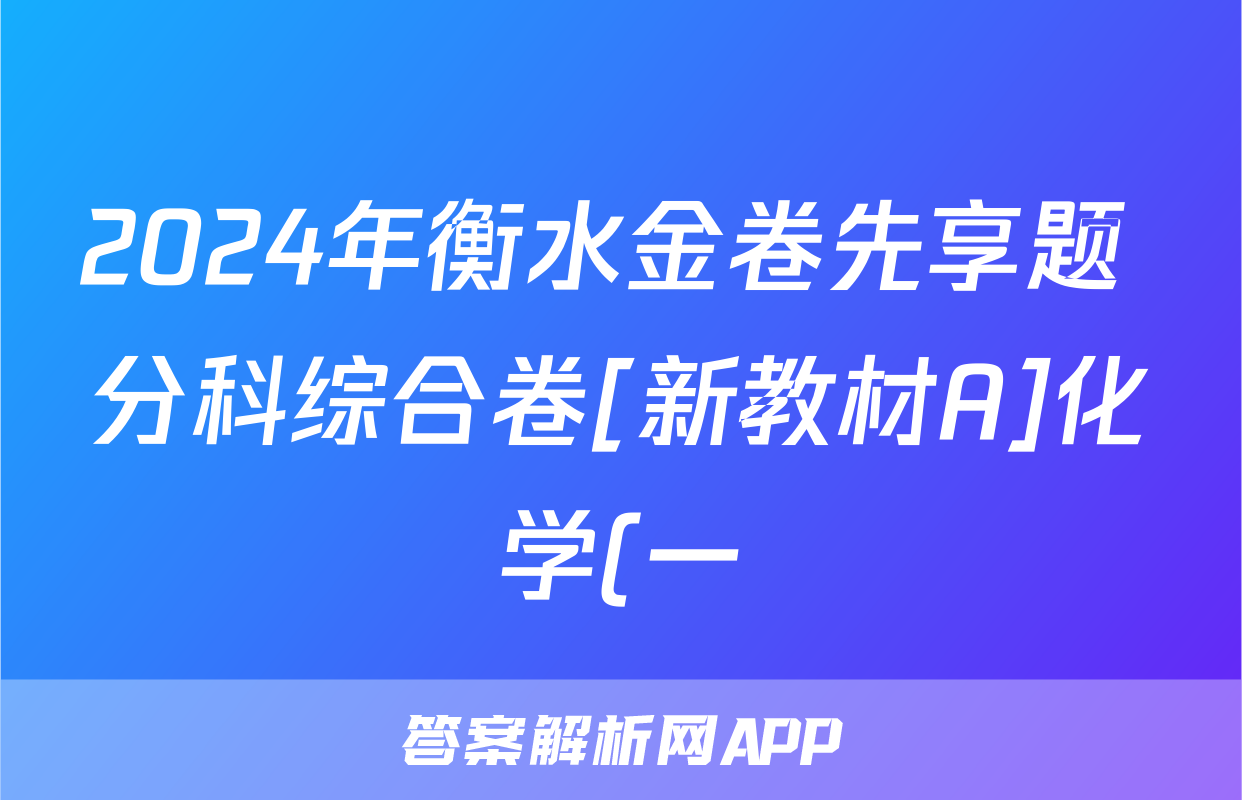2024年衡水金卷先享题 分科综合卷[新教材A]化学(一)1试题正在持续更新,目前答案易对为大家整理了相关试题及答案,供大家查缺补漏,高效提升成绩。