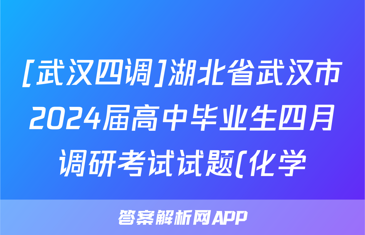 [武汉四调]湖北省武汉市2024届高中毕业生四月调研考试试题(化学)正在持续更新,目前答案易对为大家整理了相关试题及答案,供大家查缺补漏,高效提升成绩。