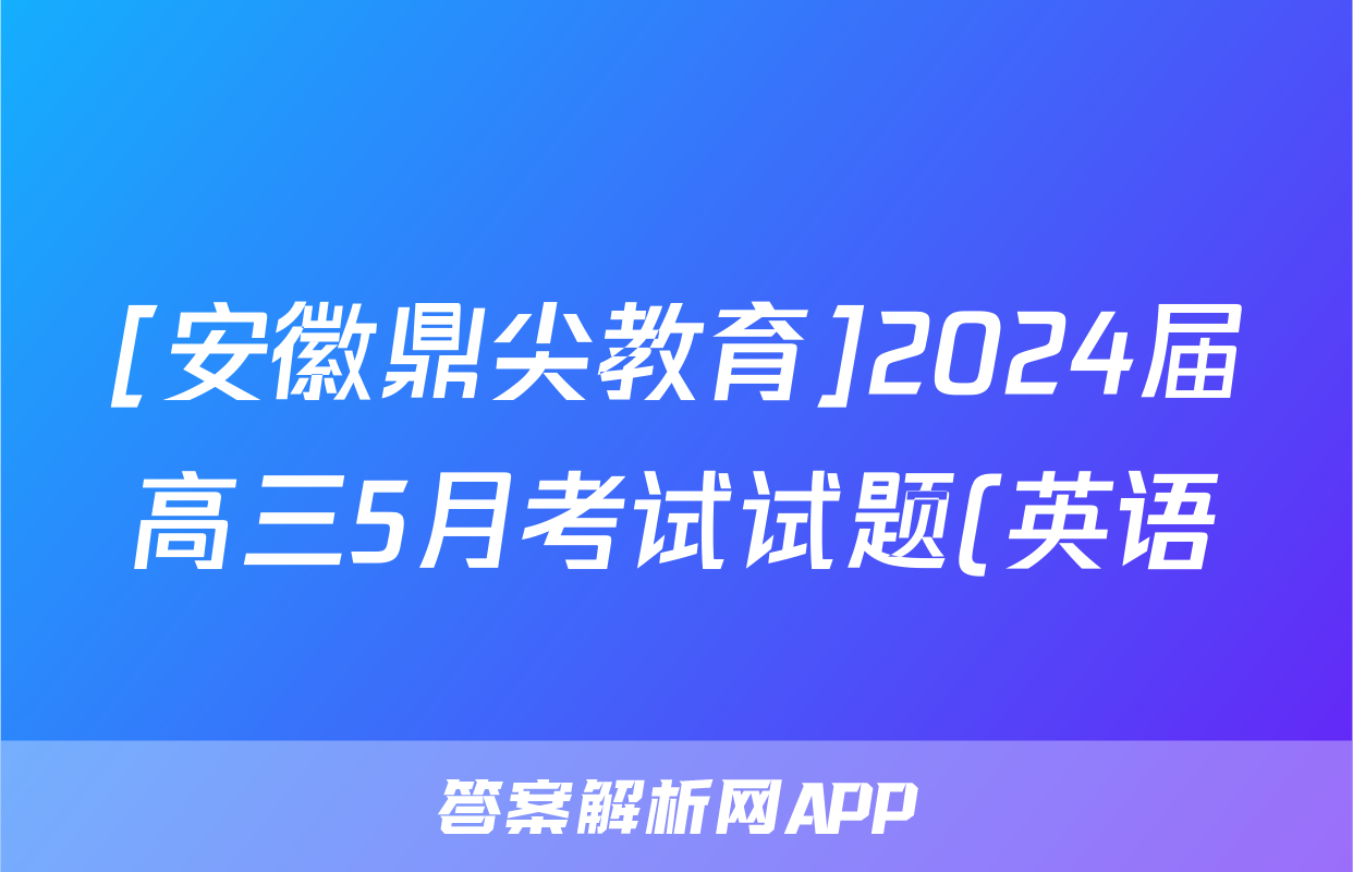 [安徽鼎尖教育]2024届高三5月考试试题(英语)正在持续更新,目前答案易对为大家整理了相关试题及答案,供大家查缺补漏,高效提升成绩。