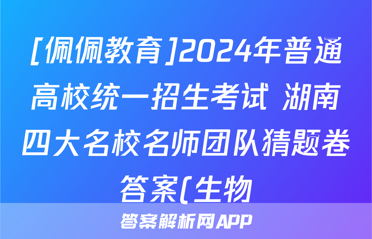 [佩佩教育]2024年普通高校统一招生考试 湖南四大名校名师团队猜题卷答案(生物)正在持续更新,目前答案易对为大家整理了相关试题及答案,供大家查缺补漏,高效提升成绩。