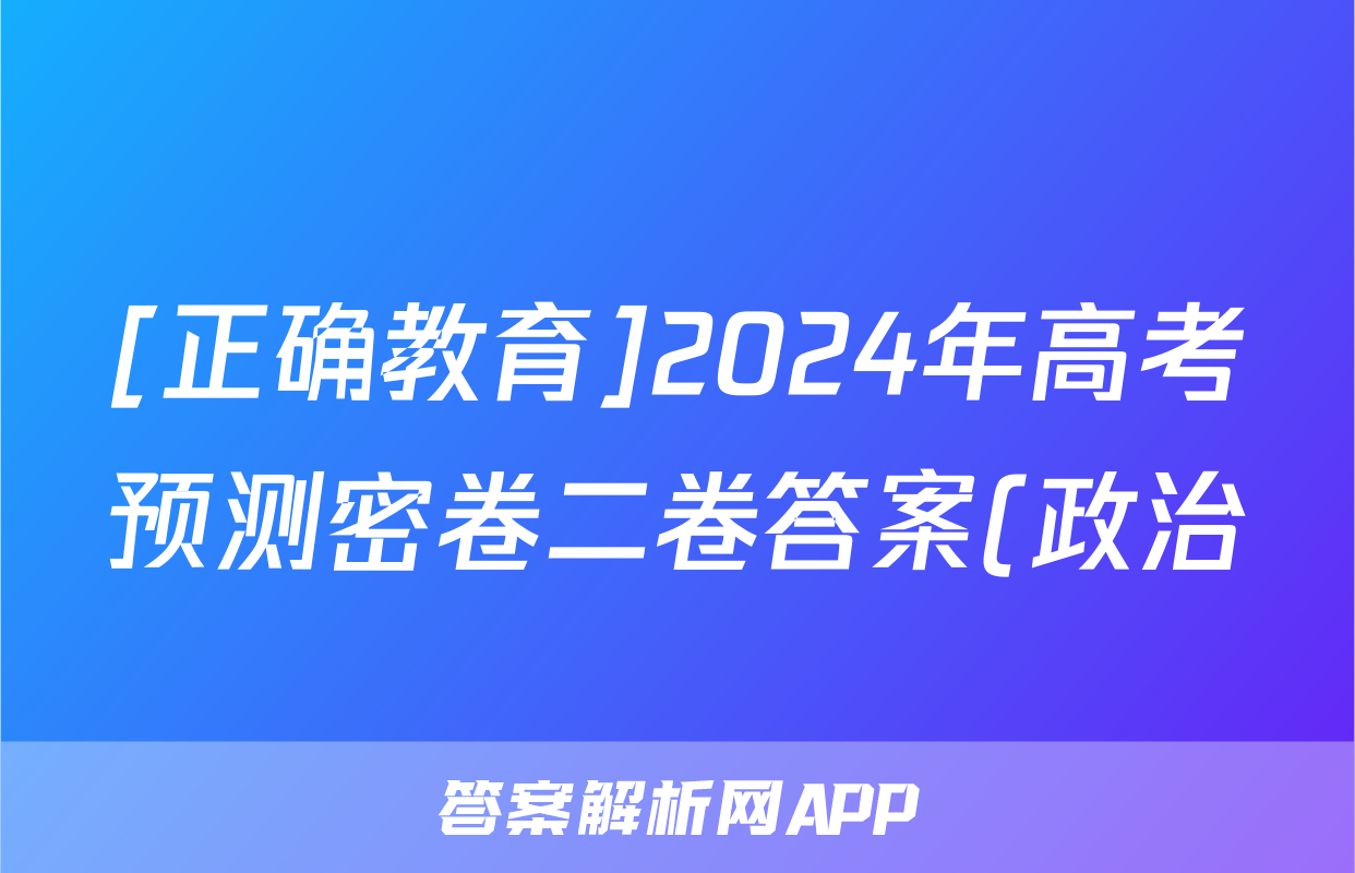 [正确教育]2024年高考预测密卷二卷答案(政治)正在持续更新,目前答案易对为大家整理了相关试题及答案,供大家查缺补漏,高效提升成绩。