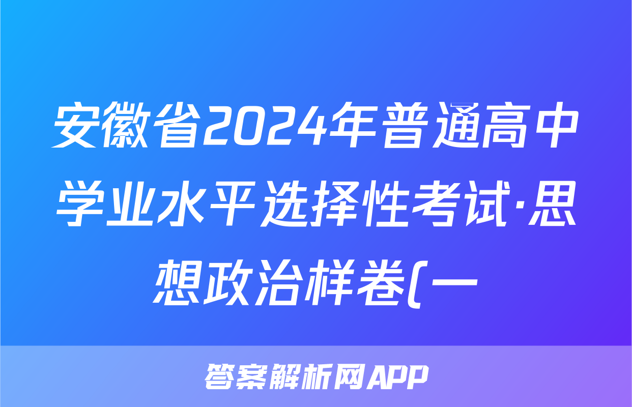 安徽省2024年普通高中学业水平选择性考试·思想政治样卷(一)1[24·(新高考)高考样卷·思想政治·AH]试题正在持续更新,目前答案易对为大家整理了相关试题及答案,供大家查缺补漏,高效提升成绩。