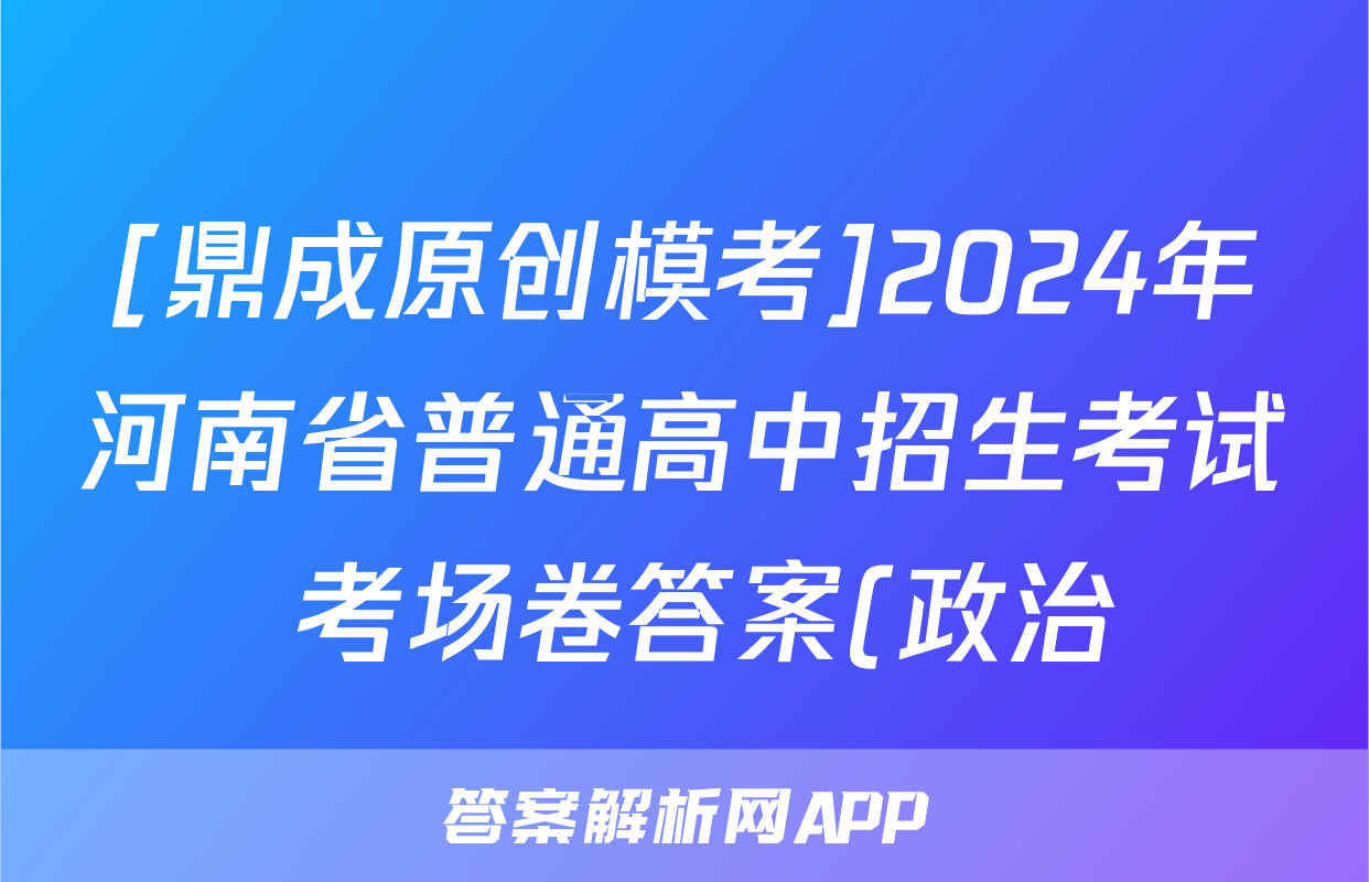 [鼎成原创模考]2024年河南省普通高中招生考试 考场卷答案(政治)正在持续更新,目前答案易对为大家整理了相关试题及答案,供大家查缺补漏,高效提升成绩。