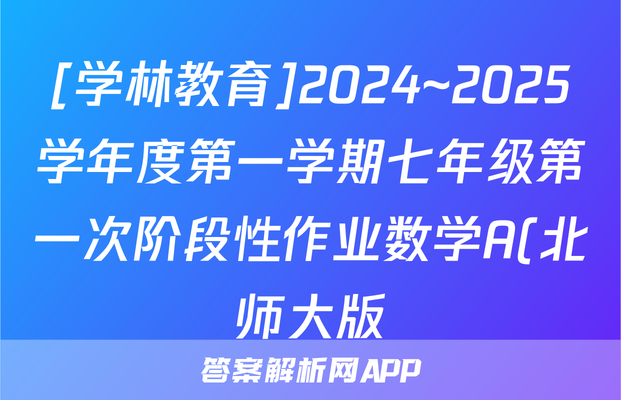 [学林教育]2024~2025学年度第一学期七年级第一次阶段性作业数学A(北师大版)答案正在持续更新,目前答案易对为大家整理了相关试题及答案,供大家查缺补漏,高效提升成绩。